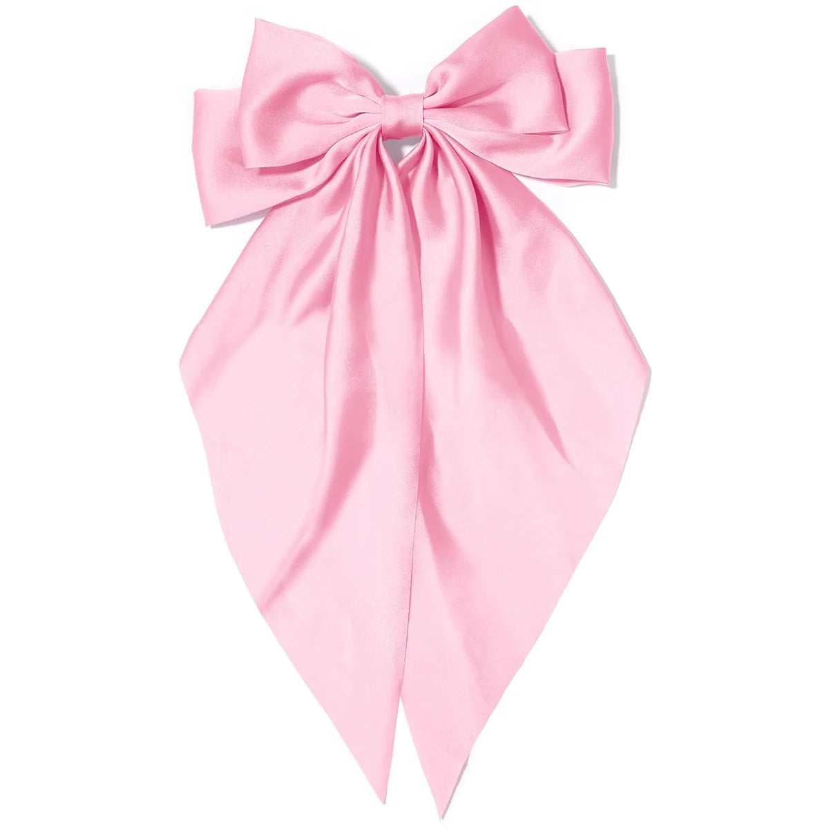 Women's pink bow hair clip, large white satin bow, long tail alligator clip, big hair bow girl suitable for birthday wedding dan Women's pink bow hair clip, large white satin bow, long tail alligator clip, big hair bow girl suitable for birthday wedding dan