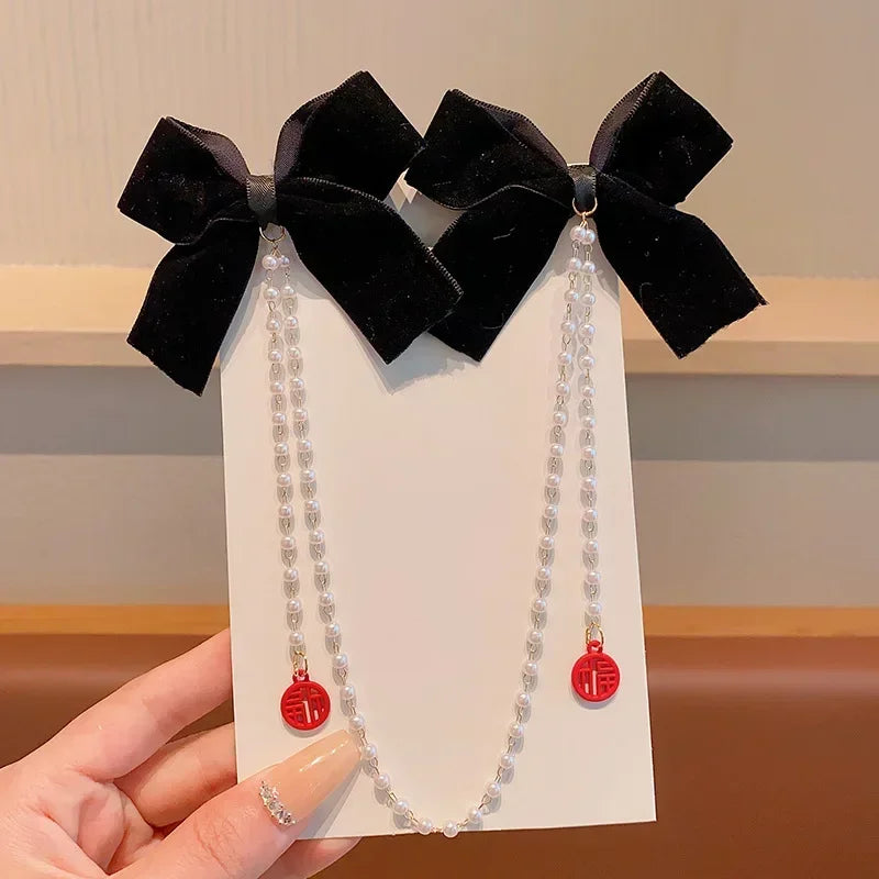 New Elegant Pearl Bow Tassel Hair Clips Solid Velvet Hair Claw Children Princess Hairpins Hair Accessories Заколка Для Волос New Elegant Pearl Bow Tassel Hair Clips Solid Velvet Hair Claw Children Princess Hairpins Hair Accessories Заколка Для Волос